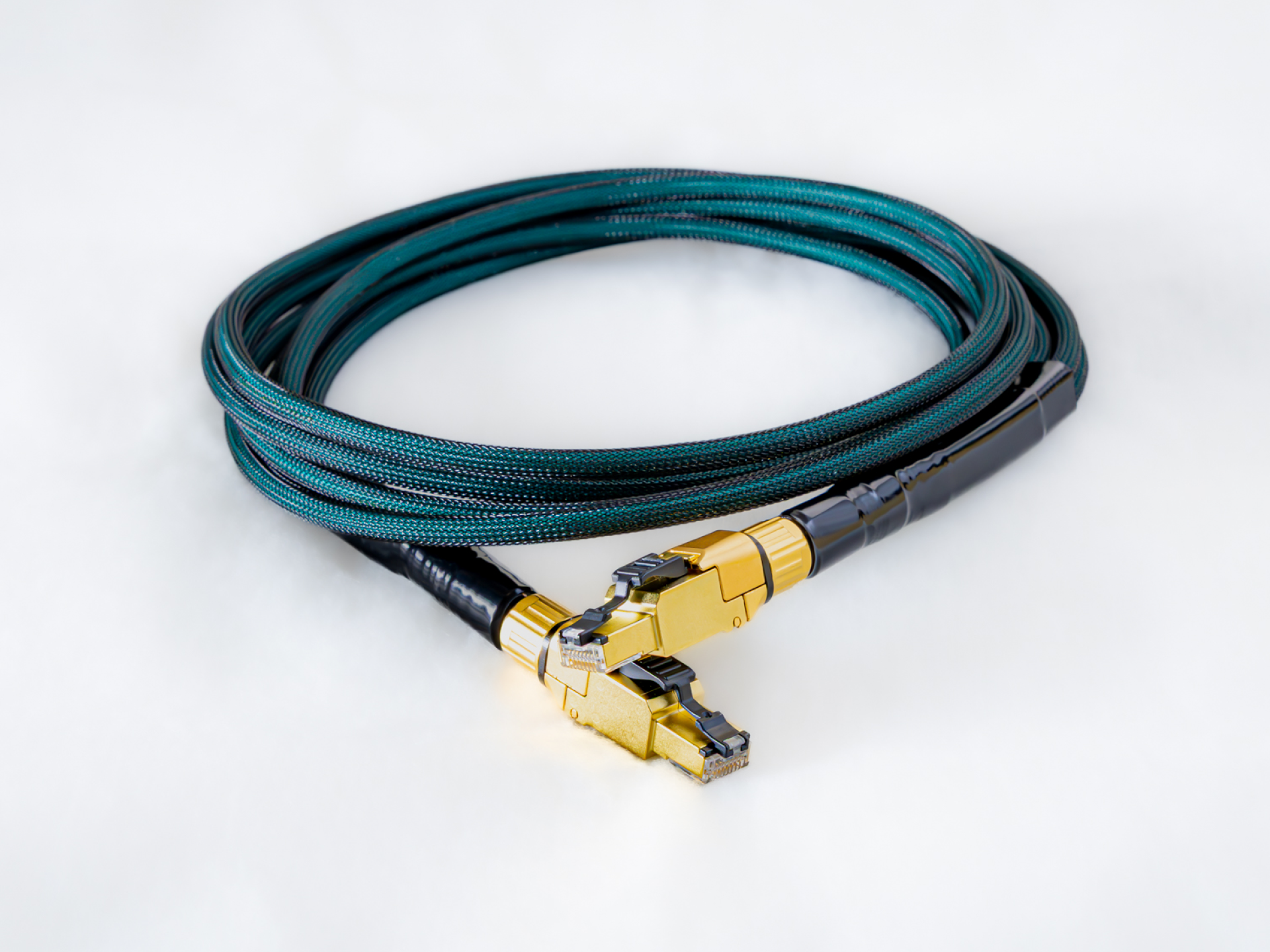 LANケーブルのRJ45端子には信頼性の高いテレガードナー製の金メッキ製最高級品を採用、USBケーブルのA端子とB端子にも超ジュラルミン削り出しの制振シールド構造を採用した金メッキ製を採用し、プラグ部分の伝送ロスや外来ノイズや共振による劣化を防いでいます。