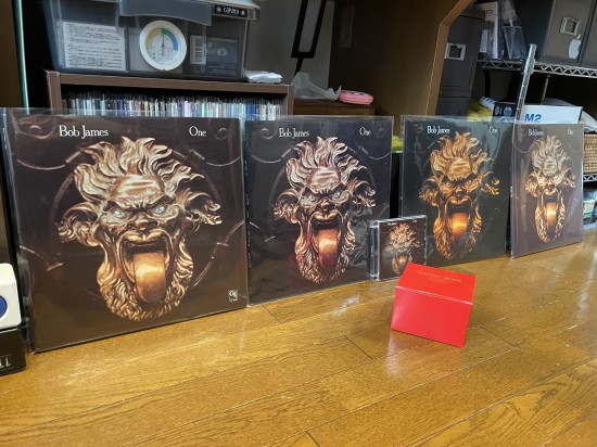 (先のaudio union試聴会での課題の一つBob James単独名義1st.アルバム「ONE」。試聴会後に管理人KさんからKoike Stringsさんに進呈された本国オリジナル盤が一番左。国内盤、各種リイシュー、SACDを比較試聴しました。本国オリジナル盤に刻まれた圧巻の情報量は衝撃的に群を抜いています。)(あ。おかげで僕この国内盤のほう頂戴しちゃいました!ありがとうございます!)