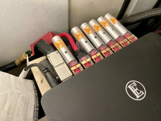 電源系からミキシングコンソールから ありとあらゆる機材にACOUSTIC REVIVEのケーブルやアクセサリーが使用されていました。