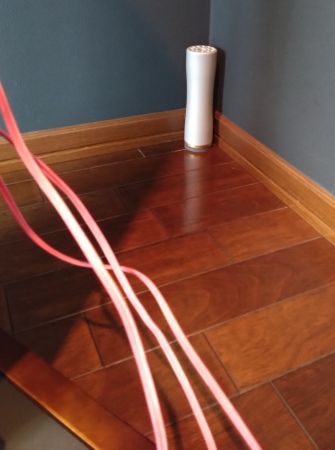 やっと暑さがおさまってきたところで懸案だったRHR-21の2本目をお借りしました。 1本だけのときは視聴位置前後の一直線上で設置位置を決めればよかったのですが2本になるとそんな単純にはいかないですね。 設置例を見ながらスピーカーの後方や横などでそれぞれ少しずつ位置を変えながら聴いてみました。 結局前方コーナーが他の設置位置と比べて音がとてもスッキリして見通しがよく、音数も多く感じました。 ![]() 1本使用でも大きな効果があると思っていましたが2本使用の効果は格別です。 ということで2本目導入を決定しました。 |