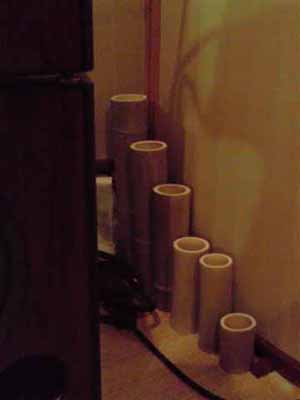 先日快気祝いと銘打ってスタビさん宅にお邪魔させて頂きました。 久々のスタビさん宅への訪問でしたので、お体の件で一時中断せざるも得ない状況にもありましたが、進化の程を体験させていただきましたのでレポート致します。 訪問時、私の不徳の致すところで、性能の悪い携帯のカメラで取った画像なので、画像が非常に悪くなっております・・・ まず、スタビさん宅と云えば、KEFのハイエンドスピーカーです。 ![]() 大口径のウーハーが目を引きます。 この大口径のウーハーを制御することが肝ですよね・・・ 大口径ウーハーと云えば、JBLのスタジオモニターシリーズとか、 B&Wに採用されています。 何も対策されていない環境なら、非常にブーミーな低音が響き渡る事が容易に想像出来ますが、流石スタビさん巧みなセッティングをされており、低域のキレや締りや押し出しがあり、とても大口径スピーカーから奏でる低域とは思えない音でした。 スタビさん曰く、非常に低域の処理には苦労されたらしく、そこからのキレと押し出しまでの進化にはトライ&エラーを何度も繰り返したとの事でした。 その一部が竹を使った低域調整セッティングです。 和室のオーディオルームに良く合うし、コストパフォーマンスも 抜群です。 ![]() それと、私の目を奪ったのは電源周りの使いこなしです。 かなり工夫されている様子が画像からも読み取れます。 ![]() スタビさんのシステムでの音のキレと押し出し、音の輪郭は 徹底された電源環境の改善の結果が現れている結果だと思います。 セッティングに悩める方、是非ともスタビさんのお宅へヒントを 探しに如何でしょうか? 私もかなり、ヒント頂きました。 ありがとうございました。 |