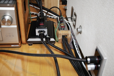 パラジーです。 皆様からいただいたアドバイスに刺激されて、お約束通り再度電源系統の見直しをいたしました。 今回の報告は我が家のノイズカットトランスと新設の壁コンセントの比較です。 ![]() ![]() ご報告ができるまでに一週間ほど時間がかかってしまいましたが、実は、私がアコリバに発注した部品が、なぜかpakaさんのところに送られてしまったらしいのです。 笑い話はともかくとして、首を長くして待っていた荷物を解いて、K氏からの指示書に従い、早速コンセント回りの工事をいたしました。 今回使用したパーツはCB-1DBとCFRP-1F、そしてコンセントはRTP-4 ultimateに使用しているのと同等品で、会員として分けていただきました。 いつものことながら、各パーツの作りの良さには驚かされます。航空レベルアルミ合金+黄銅の重量級コンセントベース、カーボンファイバーのプレート。良い材料をふんだんに使い精密に仕上げられています。 コンセントを強固にサンドイッチする構造は、設計も巧みで、実際に取り付けてみると「内外からの振動をぬかり無く押さえ込んでくれるだろう」という期待を持たせます。 配電盤のノイズ対策も指示書に従って作業、1時間後には通電できました。 今回の設置場所、トランス導入前までオーディオ用として使っていたコンセントで、その後は松下電工のホスピタルグレードの製品に交換して、雑電源として使っていました。 屋内配線に関しては、築30年の我が家ですから、オーディオ用としての配慮は全くなされていません。 一方、比較対象になったトランス、容量は3KVA、トランスのシールド端子はRGC-24で処理しています。 負荷側の電源BOXはRTP-4 ultimateです。 RTP-4 ultimateからは、パワーアンプ、CDプレーヤ、DVDプレーヤ、イコライザーアンプに電源を供給しています。 入出力ケーブルはすべてPOWER REFERENCEです。 試聴はトランスを経由した状態と、壁コンセントの改造前、そして改造後の3回実施しました。 試聴には主としてLouis ArmstrongのSUMMERTIME with Ellaを使用。このソース、帯域幅は狭いのですが、アナログ録音であることに加え、レコーディングした場所の空間が広く、奥行き感、空気感をうまく表現しています。 ![]() コンセントに通電後、8時間ほどエージングをして試聴に入りました。 結果は意外にあっけないものでした。 トランスと壁コンセント、両者の音のバランスはきわめて近く、指摘を受けたような、「雑味が増える」あるいは「音が痩せる」といった傾向は感じられませんでした。 しかし、壁コンセントには優れた点がありました。 上記のソース、イントロで突き刺さるようにLouisのトランペットが流れてくるのですが、この表現力でショックを受けました。 このトランペットはステージのかなり奥深いところから聞こえてきます。 この音、Louisのボーカルマイクで拾っているのだと思いますが、トランペットのフレアー部の振動が明瞭に捕らえられているのです。 この響きが楽器の個性あるいは魅力ですが、こうした繊細な音は付帯音によってマスキングされやすく、再生が難しいのです。逆に、クリアに表現できれば空気感やリアリティーが高まります。 壁コンセントはこのパートをトランスより明瞭に表現し、全般的に音の粒立ちが良いことを確認しました。そして、ゆる〜い感じのトロンボーンも心地よい空気感に満たされたのです。これには驚きです。 ![]() 続いて、壁コンセントの改造前と改造後の違いです。 改造前は松下電工のホスピタルグレードのコンセントに、ステンレスのコンセントカバーです。これをリファレンスにしました。 結果ですが、スピード感やドライブ能力に大きな差がでました。明瞭に確認できる部分がやはりイントロにあります。 ステージの下手からバイオリンが立ち上がってくるのですが、弦の粒立ちがまったく違うのです。 オシロスコープの波形でイメージしていただきたいのですが、改造前のコンセントが波形のエンベロープをトレースしている印象に対して、改造後はひとつひとつの波形に敏感に反応するようなレスポンスがありました。 もう一つ特質すべきことはドライブ能力の差です。特に低音部は顕著で、締まった低音が得られます。芯があると言うのでしょうか、こうした反応の良さは、シングルコアシリーズのケーブルに共通するものがありました。あの感じです。この点はトランスと比べても大きなアドバンテージがありました。 今回も感じた事ですが、これまで導入したアコリバ製品のすべてが同じ方向性を示していました。付帯音を極限まで減らし、ソースの信号を強力に伝送する能力です。こうした積み重ねがこれほどまでに再生音を変えてしまうとは、今更ながら驚きです。その根源はどこにあるのでしょう。推察してみました。 前回の投稿で、K氏から「壁コンセントを使っています」と言われた事に対して、「私にはヒントになるものがあった」と書きましたが、その事を確認してみました
